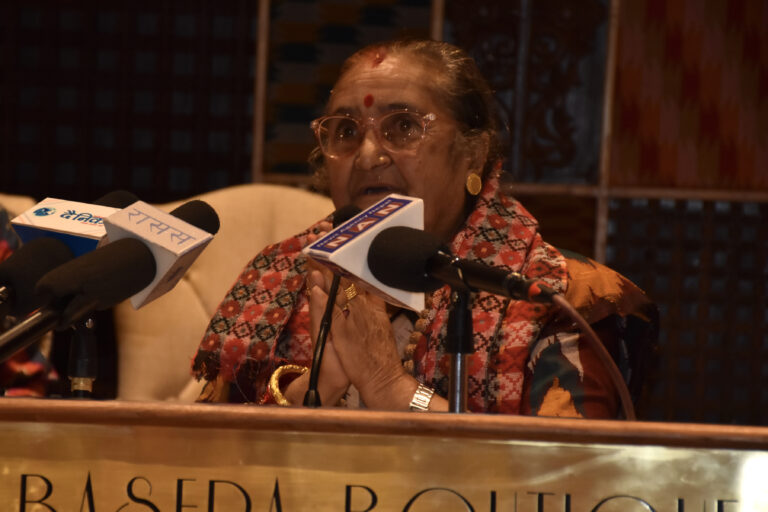 काठमाडौँ,१४ कार्तिक । घोस्ट राइटिङ नेपालद्वारा सोमबार राजधानीमा आयोजित कार्यक्रममा ‘हिम्मतवाली आमा डम्बरकुमारी’ पुस्तक लोकार्पण कार्यक्रममा पुस्तकबारे जानकारी गराउँदै लेखिका डम्बरकुमारी तिमिल्सिना । तस्बिर : चन्द्रकला क्षेत्री/रासस