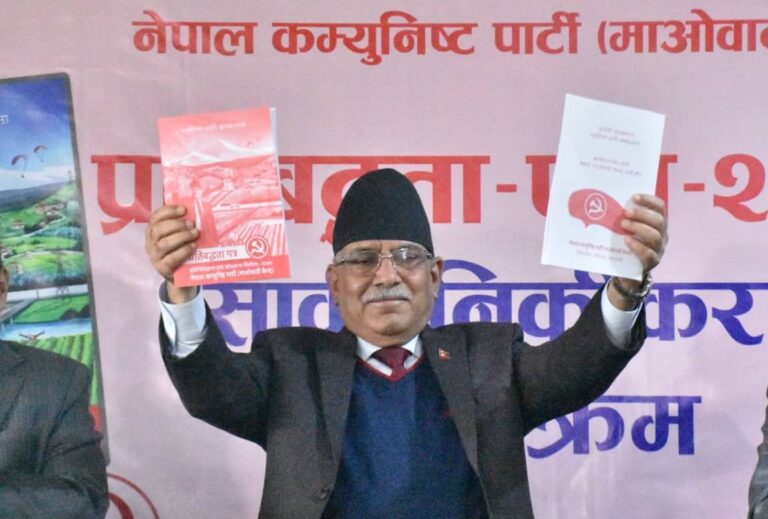 काठमाडौं, १४ कार्तिक । नेकपा (माओवादी केन्द्र)ले राष्ट्रियता, सार्वभौमसत्ता र अखण्डताको पक्षमा दृढतापूर्वक उभिदै कालापानी, लिपुलेक र लिम्पियाधुरालगायतको अतिक्रमित नेपाली भूमि फिर्ताको लागि अविलम्ब कूटनीतिक पहल गर्ने लक्ष्यका साथ प्रतिबद्धतापत्र सार्वजनिक गरेको छ ।