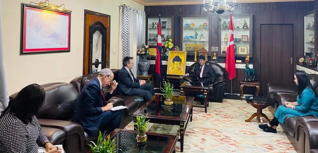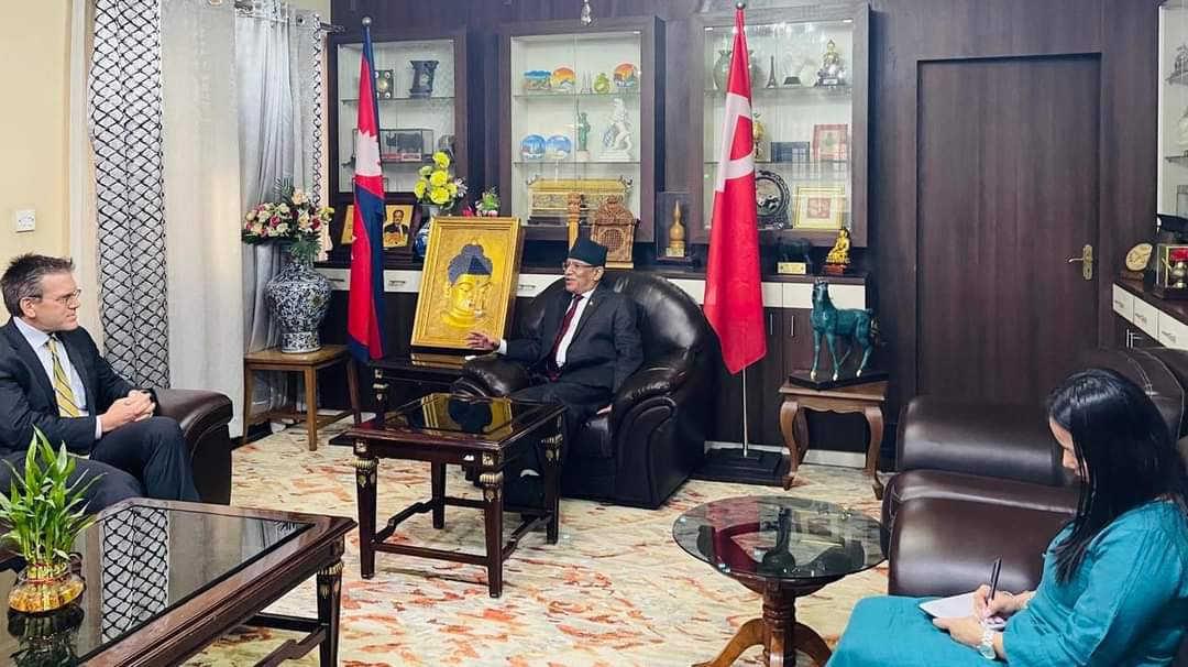 काठमाडौं, कात्तिक १५ । नेपाल कम्युनिष्ट पार्टी (नेकपा) अध्यक्ष पुष्पकमल दाहाल ‘प्रचण्ड’ र नेपालका लागि अमेरिकी राजदूत डिन आर थम्पसनबीच भेटवार्ता भएको छ । मंगलवार बिहान प्रचण्ड निवास खुमलटारमा भएको भेटमा दुई देशबीचको सम्बन्ध, नेपालमा अमेरिकी लगानी, आपसी सहयोग र सहकार्यबारे छलफल भएको जनाइएको छ ।