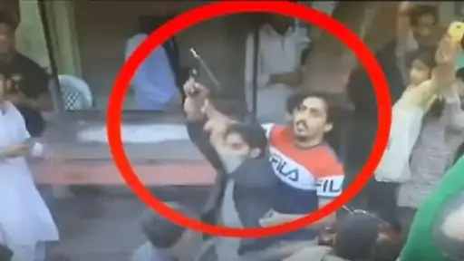 एजेन्सी, १८ कात्तिक । भिडियोमा देखिएका इब्तिसामले रातो रंगको शर्ट लगाएका छन् । उनले आक्रमणकारीलाई समातेर इमरानको ज्यान बचाए ।