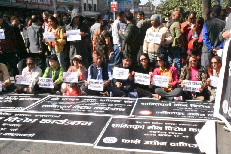 बैंक तथा वित्तिय संस्था समाधानार्थ शान्तिपुर्ण मौन विरोध कार्यक्रमलाई विभिन्न उद्योगी व्यवसायीहरुले समर्थन गरेका छन् । Photo : Mukunda Kalikote