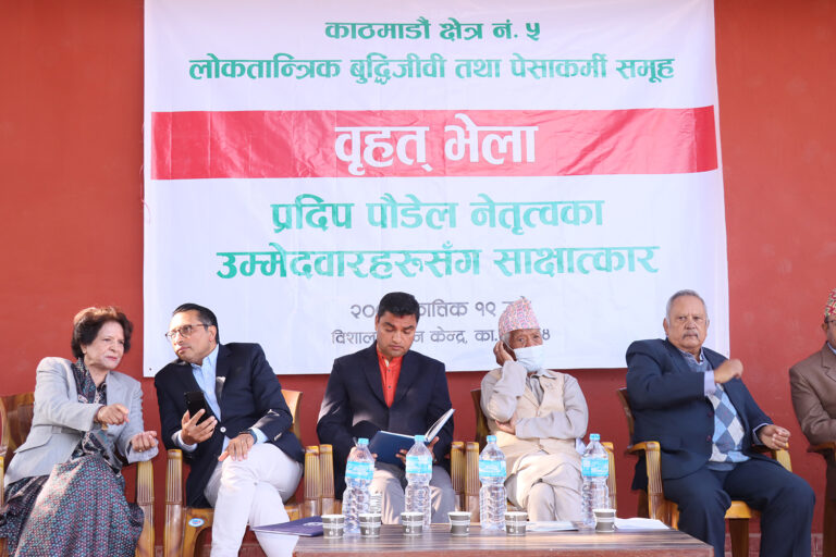 ‘हामीले भनेका छौं, हामी माथि नै छानविन गर्ने एउटा नागरिक छानविन समिति बनाइनुपर्छ। त्यसको सुरुवात हामीले गर्ने छौं,’ काठमाडौं–५ मा सत्ता गठबन्धनका तर्फबाट प्रतिनिधिसभा सदस्य उम्मेदवार रहेका पौडेलले भने। उनले उक्त समितिको छानविनका क्रममा गलत सवित भए सांसद पद नगए पनि अर्को पटक निर्वाचनका लागि आफू अयोग्य हुने पनि जिकिर गरे। Photo : Dinesh Chaudhary