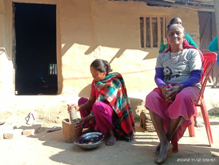 कैलाली, कात्तिक २७ । कैलालीको टीकापुर नगरपालिका–१ शक्तिनगर शिविरकी बढ्घर चन्द्रा थारू शनिबार परम्परागत डोक्नीमा अचार कुट्दै छिन् । शिविरमा रहेको सार्वजनिक भवनमा उनीगायत अन्य स्थानीयवासी खाना पकाउन व्यस्त थिए । उनले पकाएको खान भोजभतेरका लागि भने होइन । चन्द्रासँगै थुप्रै महिला र पुरुष खाना पकाउनमा निकै व्यस्त देखिन्थे ।