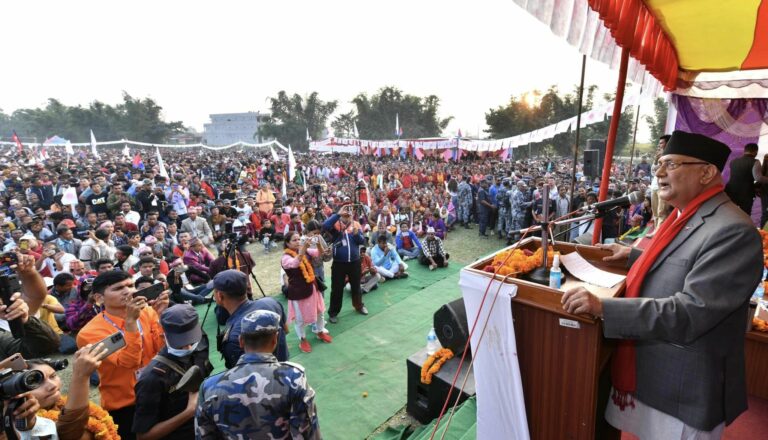 सिन्धुली, २९ कार्तिक । नेकपा (एमाले) का अध्यक्ष केपी शर्मा ओलीले देश समृद्ध बनाउन सुदृढ सरकार आवश्यक रहेको बताएका छन् । हिजो (सोमबार) सिन्धुलीको दुधौलीमा आयोजित चुनावीसभालाई सम्बोधन गर्दै उनले यस्तो बताएका हुन् ।
