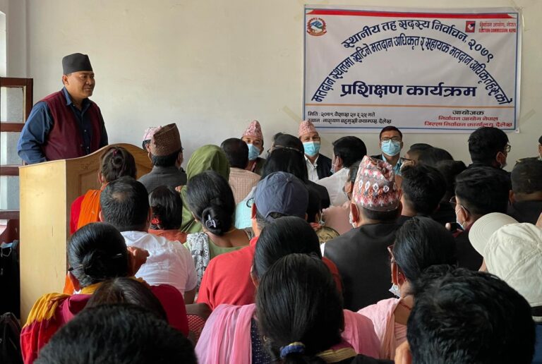 जिल्लाका दुई सय १० मतदान केन्द्रमा खटिने चार सय २२ मतदान अधिकृत र सहायक मतदान अधिकृतसहित जगेडामा रहेका थप १४ गरी चार सय ३६ जनालाई तालिम दिइएको हो । मतदान हुनुभन्दा पहिला खटाइसकेपछि र मतदानका दिन गर्नुपर्ने कामका बारेमा तालिममा सिकाइएको थियो । उनले भने, “मतदानपूर्व गर्ने, मतदानका दिन गर्ने, मतदानपश्चात् मतपेटिका सिल गर्नेबारे र मतदानको दिनभन्दा अगाडि सर्वदलीय बैठक बोलाउने लगायत विषयमा जानकारी गराइएको छ ।”