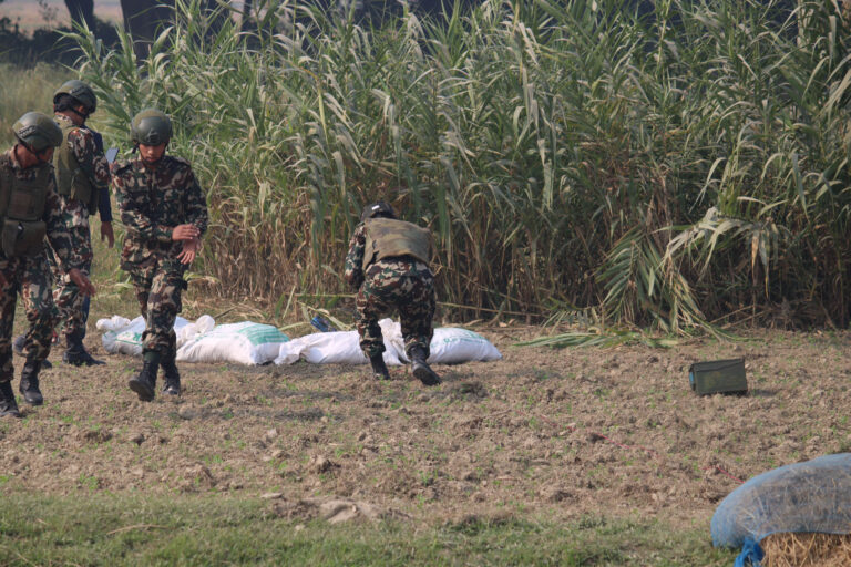 काठमाडौँ,३० कार्तिक । कपिलवस्तुको कृष्णनगर नगरपालिका(५, पुरुषोत्तमपुर गाउँ नजिकै फेला परेको शङ्कास्पद वस्तु नेपाली सेनाको टोलीले डिस्पोज गर्दै ।तस्बिरः सनिउल्ला धोबी/रासस