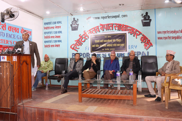 काठमाडौं, ३० कात्तिक । डा.प्रेमसिंह बस्न्यातले देशको माटो बचाउनेलाई मात्र भोट दिन आग्रह गरेका छन् । आज (बुधबार) रिपोर्टर्स क्लब नेपालमा पत्रकार सम्मेलन गर्दै उनले आगामी मंसिर ४ गते हुने प्रतिनिधि सभा तथा प्रदेश सभा निर्वाचनमा माटो बेचेर राजनीति गर्नेलाई डाँडो कटाउनुपर्ने बताएका छन् ।