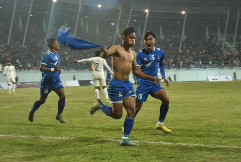 काठमाडौं, ३० कार्तिक । अन्तर्राष्ट्रिय मैत्रीपूर्ण फुटबल खेलमा नेपालले पाकिस्तानलाई पराजित गरेको छ । त्रिपुरेश्वरस्थित दशरथ रङ्गशालामा आज भएको खेलमा नेपालले पाकिस्तानलाई १–० गोअन्तरले पराजित गर्दै विजयी भएको हो । यस जितसँगै नेपालले दशरथ रङ्गशालामा ५० औँ खेल पूरा ग¥यो । यसअघि दशरथ रङ्गशालामा सन् १९८४ मा आयोजना भएको पहिलो दक्षिण एसियाली खेलकुद प्रतियोगितामा नेपालले औपचारिक खेल खेलको थियो ।