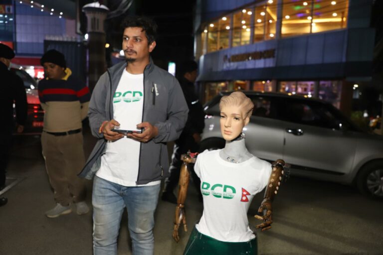 स्वतस्फूर्त रुपमा युवा इन्जिनियरहरुले बनाएको रोबोटले काठमाण्डौं ५ का महाराजगंज, वसुन्धरा, हाडीगाउँ लगायतका क्षेत्रमा बुधबार घरदैलो गर्दै काँगेसका प्रविधिमैत्री युवा नेता प्रदीप पौडेल सहित प्रदेश सांसदका उम्मेदवारहरुका लागि भोट मागेको हो ।