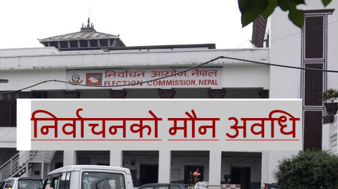 काठमाडौं, मंसिर २ । ४ मंसिरमा हुने प्रतिनिधिसभा र प्रदेशसभा निर्वाचनका लागि विहिबार मध्यरातिबाट मौन अवधि सुरु भएको छ। निर्वाचन आयोगका अनुसार प्रतिनिधिसभा र प्रदेशसभा सदस्यका उम्मेदवारले विहिबार राति १२ बजेदेखि चुनावी प्रचार बन्द गरिएको छ ।