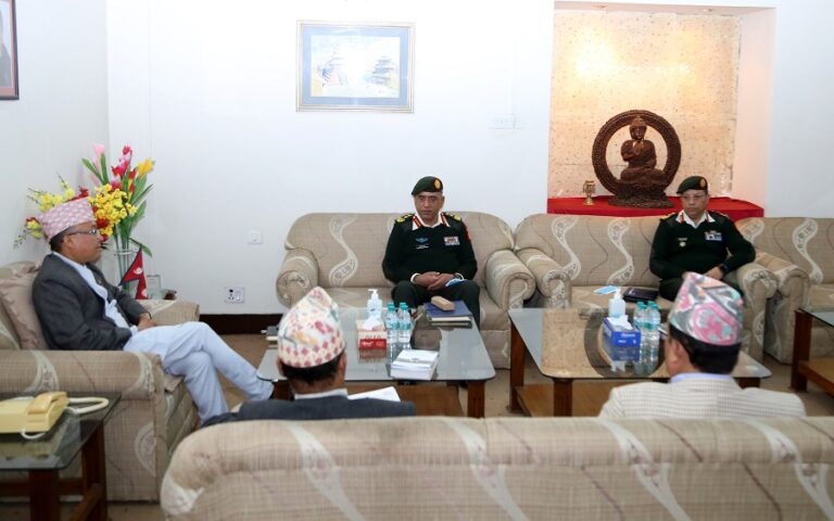 आयोगको कान्तिपथस्थित कार्यालयमा भएको भेटका अवसरमा प्रधानसेनापति शर्माले निर्वाचन सुरक्षाका लागि नेपाली सेनाले गर्दै आएको काम कारवाहीबारे अवगत गराउँदै हालसम्मको स्थलगत निरीक्षण र प्राप्त सूचनाका आधारमा निर्वाचनको सुरक्षा चुस्त रहेको र निर्वाचन सुरक्षित वातावरणमा सम्पन्न गराउन सेनाका तर्फबाट खेल्नुपर्ने भूमिका निर्वाह गर्न तयार रहेको स्पष्ट गरे।
