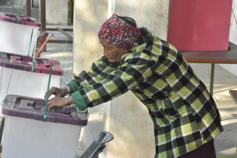 सो मतदान केन्द्रका निर्वाचन अधिकृत दिनेश खड्काले शान्तिपूर्ण रुपमा मतदान भैरहेको जनाए । सो मतदान केन्द्रका सुरक्षा प्रमुख नेपाल प्रहरीका असई विपेन्द्र कुमार सिंहले सुरक्षाको राम्रो प्रवन्ध रहेको र मतदाताहरुले ढुक्कसँग मतदान गरिरहेको जनाए । तस्विर : मुकुन्द कालिकोटे, रिपोर्टर्स नेपाल डटकम