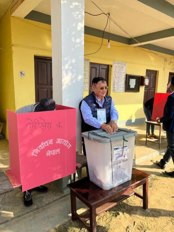 काठमाडौं, ४ मंसिर । नेपाली कांग्रेसका नेता तथा चितवन-२ का प्रतिनिधिसभाका उम्मेदवार उमेश श्रेष्ठले आफ्नो मत खसालेका छन् ।