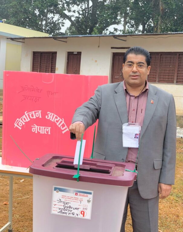 गोरखा, ४ मंसिर । नेपाल परिवार दलका अध्यक्ष तथा पूर्वमन्त्री एकनाथ ढकालले मतदान गरेका छन् । उनले आफ्नो गृहजिल्ला गोरखाको भीमसेनथापा गाउँपालिका वडा नम्बर ८ स्थित श्री जागेश्वर माविको मतदान केन्द्रमा आज विहान साँढ ९ बजे मतदान गरेका हुन् ।