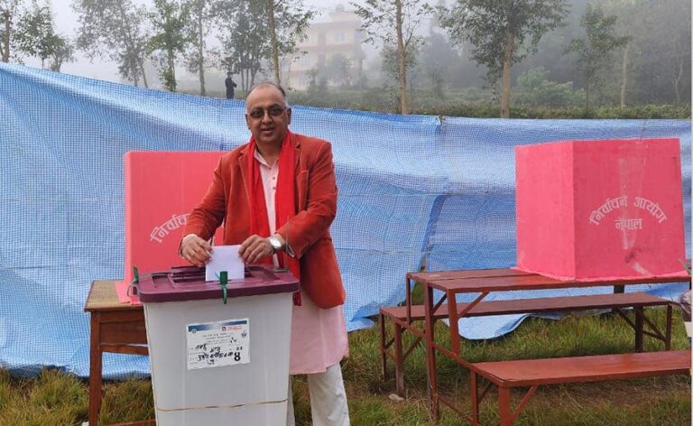 काठमाडौं, ४ मंसिर । प्रतिनिधिसभा सदस्य र प्रदेशसभा सदस्य निर्वाचनमा तनहुँ क्षेत्र नं.२ प्रतिनिधिसभा सदस्यका उम्मेदवार शंकर भण्डारीले तनहुँको भानु नगरपालिका–९ स्थित पुर्कोट क्याम्पसको मतदान केन्द्रमा मतदान गरेका छन् ।