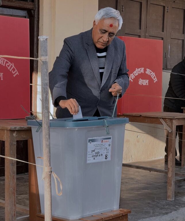 जनजागृति माध्यमिक विधालय मतदान केन्द्रमा मतदान गरेका छन् ।
