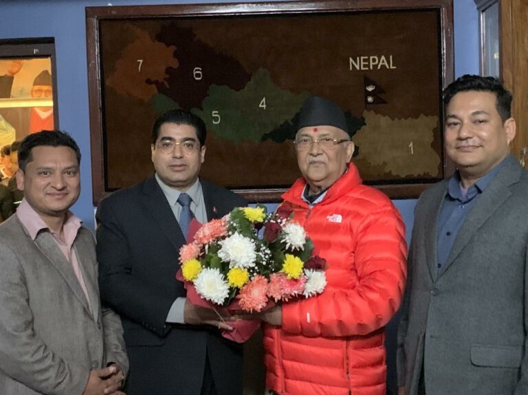 दलका महामन्त्रीद्वय सन्तोष पौडेल र प्रकाशबाबु थापासहित ओली निवास बालकोटमा पुगी नेता ढकालले प्रतिनिधि सभामा निर्वाचित भएकोमा र लोकप्रिय मतमा सबै पार्टी भन्दा नेकपा एमाले अघि भएकोमा अध्यक्ष ओलीलाई बधाई दिएका हुन्।