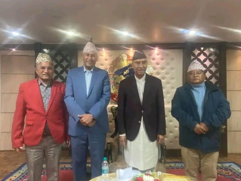 काठमाडौं, १७ मंसिर । ओखलढुंगाबाट निर्वाचित प्रतिनिधिसभा र प्रदेशसभाका सदस्यहरुले प्रधानमन्त्री शेरबहादुर देउवासँग भेटवार्ता गरेका छन् । नेपाली कांग्रेसका केन्द्रीय सदस्यसमेत रहेका प्रतिनिधिसभा सदस्यमा निर्वाचित सांसद रामहरि खतिवडा, प्रदेशसभामा निर्वाचित सांसदद्धय प्रदिप सुनुवार र बाबुराम गौतमले आज (शनिबार) प्रधानमन्त्रीको सरकारी निवास बालुवाटार पुगेर देउवासँग भेटवार्ता गरेका हुन् ।