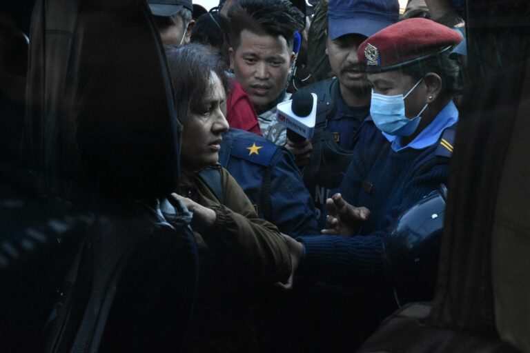 काठमाडौं, २१ मंसिर । सामाजिक अभियन्ता तारा बरालले चोलेन्द्र शमशेर जबराको पक्षमा नारा लगाउँदै धर्ना दिइरहेका वकिलहरुमाथि जुत्ता प्रहार गरेकी छिन् ।