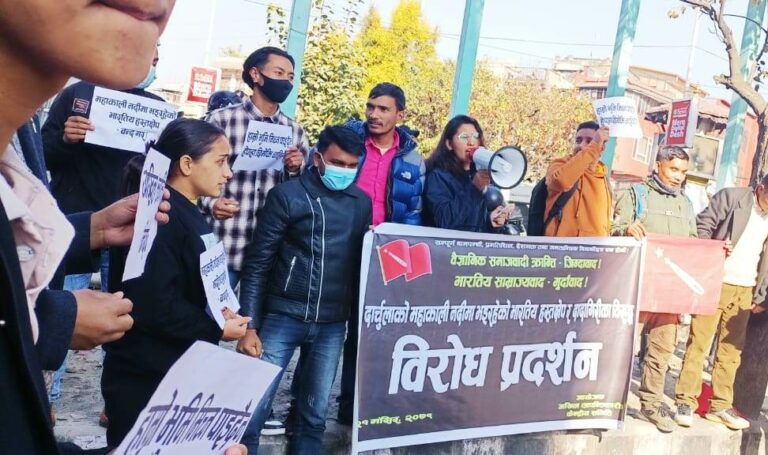 काठमाडौं, २१ मंसिर । दार्चुलाको महाकाली नदीमा भइरहेको भारतीय हस्तक्षेपविरुद्ध धर्मेन्द्र बास्तोला नेतृत्वको नेकपा बहुमतनिकट अखिल (क्रान्तिकारी)ले प्रदर्शन गरेको छ ।