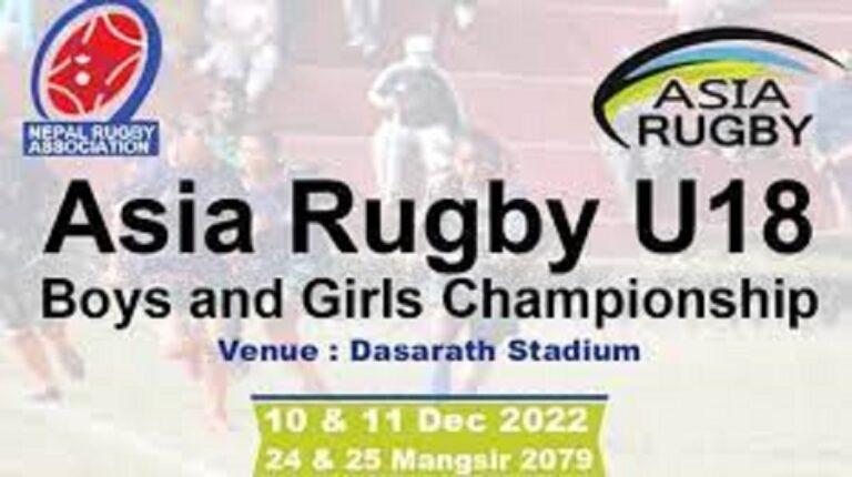 काठमाडौं, २१ मंसिर । नेपालमा पहिलो पटक १८ वर्षमुनि (यू–१८) को महिला तथा पुरुष अन्तर्राष्ट्रिय रग्बी च्याम्पियनशिप हुने भएको छ ।