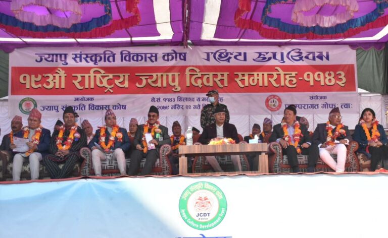 काठमाडौं, २२ मंसिर । आज १९औं राष्ट्रिय ज्यापु दिवस हो । देशभरका विभिन्न ठाउँमा बसोबास गर्ने नेवार समुदायले आज धुमधामका साथ ज्यापु दिवस मनाइरहेका छन् ।