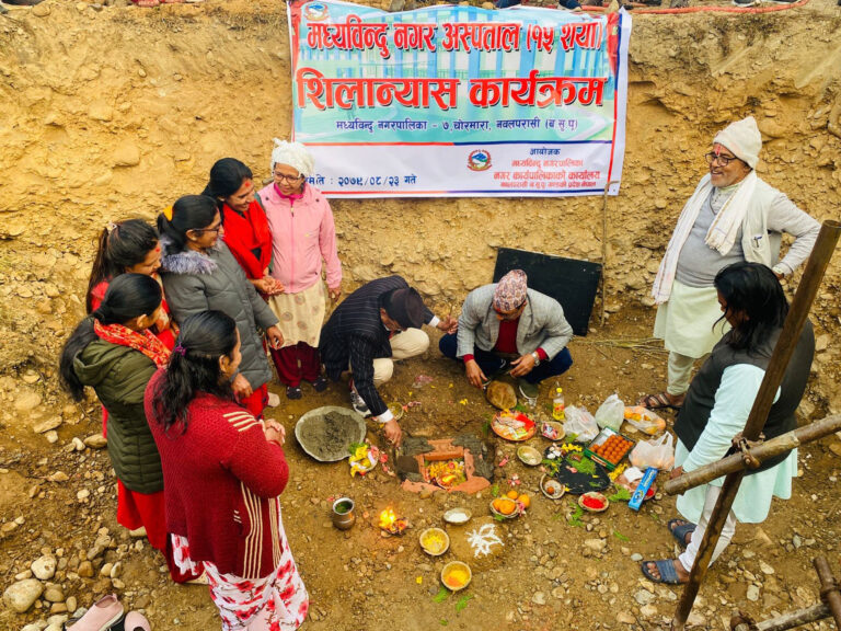 काठमाडौँ,२३ मँसिर । पुर्वी नवलपरासीको मध्यबिन्दु नगरपालिकामा १५ शय्याको नगर अस्पताल भवन निर्माण सुरु भएको छ । अस्पताल भवनको आज मध्यबिन्दु नगरपालिकाका नगर प्रमुख भीमलाल अधिकारीले शिलान्यास गर्नुभयो ।