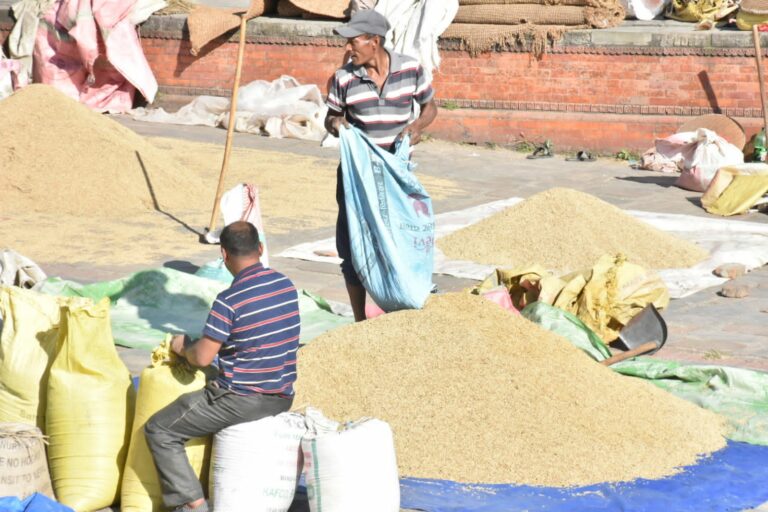 ‘दुईवटा गोरु गाडामा धान ल्याएर आएको थिए । लाइन धेरै लामो रहेछ ।’ उनले भने, ‘असोजमा भित्र्याएको धान बिक्री गर्न निकै सास्ती छ ।’