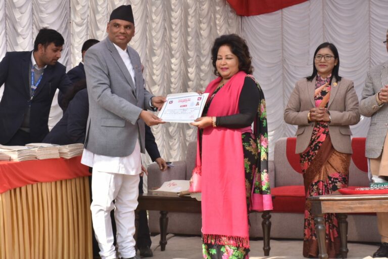 काठमाडौँ,३ पुष । निर्वाचन आयोगले प्रतिनिधिसभाको समानुपातिकतर्फ नवनिर्वाचित सांसदलाई निर्वाचित भएको प्रणापत्र प्रदान गरेको छ । निर्वाचन आयोगमा आज आयोजित कार्यक्रममा समानुपातिक निर्वाचन प्रणालीतर्फका मुख्य निर्वाचन अधिकृत एवं आयोगका सचिव गोकर्णमणि दुवाडीले निर्वाचित सांसदलाई प्रमाणपत्र वितरण गरेको हो ।