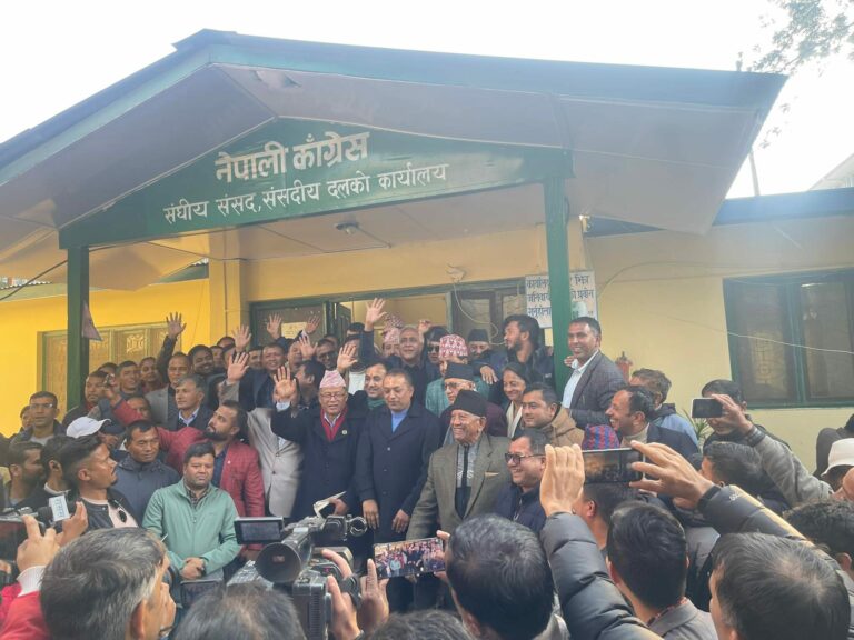 काठमाडौं, ५ पुष । नेपाली कांग्रेस संसदीय दलको नेतामा उम्मेदवारी दिएका महामन्त्री गगनकुमार थापाले दलको नेतामा उम्मेदवारी दिएका सभापति शेरबहादुर देउवालाई उम्मेदवारी फिर्ताको लागि आग्रह गरेका छन् । आज (मंगलबार) सिंहदरबारस्थित दलको कार्यालयमा दलको नेताको लागि उम्मेदवारी दर्ता गरेपछि महामन्त्री थापाले सभापति देउवालाई यस्तो आग्रह गरेका हुन् ।
