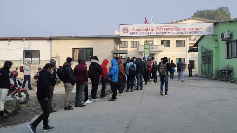 काठमाडौँ,६ पुष । नेपाल कोरिया मैत्री नगरपालिका अस्पतालमा बुधबार दक्षिण कोरियामा रोजगारीका लागि जानेहरूको स्वास्थ्य परीक्षणका लागि लामबद्ध युवा । तस्बिर : रत्न श्रेष्ठ / रासस