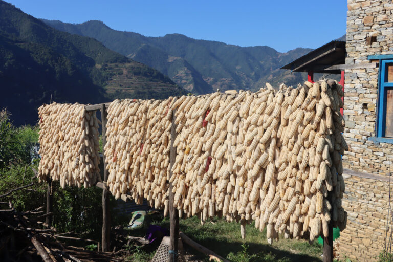 काठमाडौँ,११ पुष । भूमे गाउँपालिका–६ महतमा किसानले थन्क्याएर राखेको मकै । यस जिल्लाको भूमे र पुथा उत्तरगङ्गा गाउँपालिकाका किसानले कीराबाट बचाउन र ढिडो खानेका लागि राम्रो हुने भन्दै बारीबाट ल्याएपछि मकैलाई यसैगरी भण्डारण गरिराख्ने गर्दछन् । तस्बिर : सर्जना कार्की/रासस