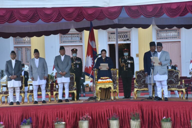 काठमाडौं, पुस १२ । नेपाल कम्युनिस्ट पार्टी (माओवादी केन्द्र) अध्यक्ष पुष्पकमल दाहाल ‘प्रचण्ड’ प्रधानमन्त्रीमा सोमबारदेखि प्रधानमन्त्रीको जिम्मेवारी सम्हालेका छन् । सोमबार राष्ट्रपति विद्यादेवी भण्डारीबाट शीतल निवासमा पद तथा गोपनियताको शपथ गरेपछि उनी सिंहदरबार पुगेर आफ्नो जिम्मेवारी सम्हालेका हुन् ।