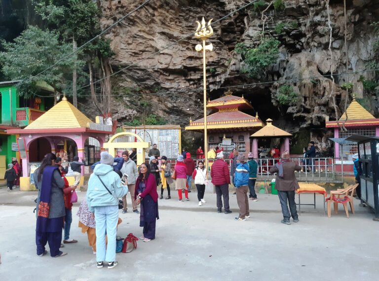 यहाँ रहेको शिव मन्दिरको पछाडि लगभग २० मिटरको उचाइबाट गाईको मुख आकारको स्थानबाट झरेको पानी ८० मिटर लम्बाइको भूमिगत ढलमार्फत स्थानीय दजुङ खोलामा पु¥याइएको छ । उक्त दजुङ खोला आँधीखोलामा गएर मिलेको छ । यहाँको आँधीखोलालाई दृष्टिविहीन बुबा र आमाप्रति छोरा श्रवण कुमारले गर्नुभएको श्रद्धा र भक्तिको प्रतीकका रूपमा पनि लिँदै आइएको छ । मन्दिर परिसरमा गौमुखे धारा, यज्ञशाला, शिवलिङ्ग, सन्तोषी माता, नवग्रहका मूर्ति, शिवजीको विशाल मूर्ति, राधाकृष्ण र गणेशको मन्दिर आदि निर्माण गरिएको छ ।