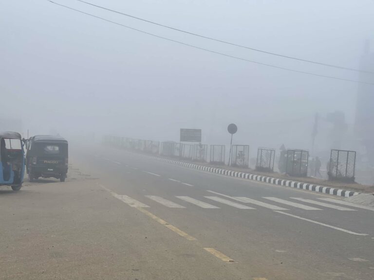 काठमाडौँ,१७ पुष । सुर्खेतको वीरेन्द्रनगरस्थित एरिचौक आसपासमा आइतबार लागेको बाक्लो हुस्सु । वीरेन्द्रनगरमा हुस्सु लाग्न थालेपछि चिसोका कारण जनजीवन प्रभावित भएको छ । तस्बिरः सुरेश आचार्य/रासस