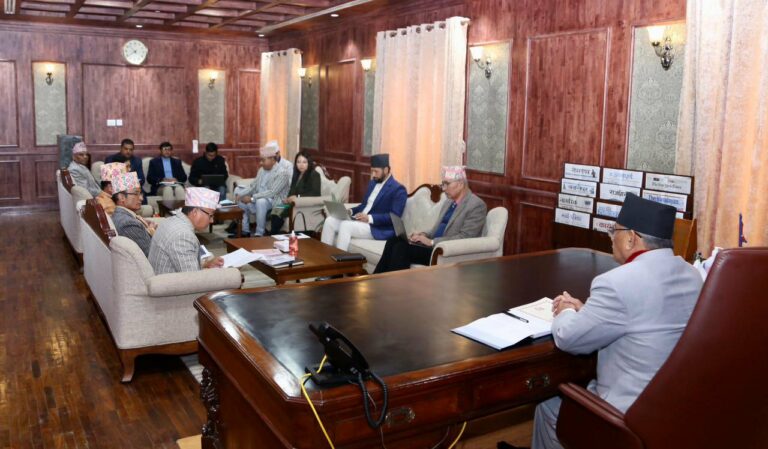 उपप्रधानमन्त्री तथा अर्थमन्त्री विष्णुप्रसाद पौडेल र उपप्रधानमन्त्री तथा गृहमन्त्री रवि लामिछाने र सरकारका मुख्यसचिव शङ्करदास वैरागीको उपस्थिति रहेको थियो । सो भेटघाटमा राष्ट्रियसभाको रिक्त सदस्यको निर्वाचन, राष्ट्रपति तथा उपराष्ट्रपति पदको निर्वाचन र एकीकृत निर्वाचन कानुनका विषयलगायत समसामयिक विषयमा छलफल तथा परामर्श भएको थियो ।