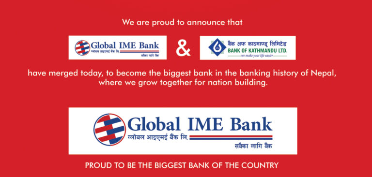 ग्लोबल आईएमई बैङ्कले बैङ्क अफ काठमाण्डूलाई मर्ज गरेपछि मुलुककै ठूलो बैङ्क बन्दै छ । मर्जरपश्चात् बैङ्कको कुल पुँजी ५७ अर्ब रुपैयाँ चुक्तापुँजी ३५.७७ अर्ब रुपैयाँ, कुल निक्षेप चार खर्ब, कुल कर्जा तीन खर्ब ७९ अर्ब रुपैयाँभन्दा बढी पुग्ने भएको बैङ्कले जनाएको छ ।