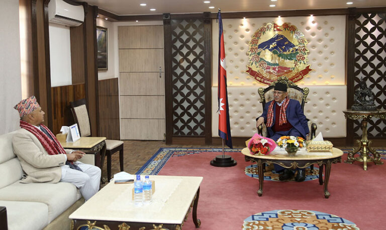 आज बिहान प्रधानमन्त्री निवास बालुवाटारमा भएको सो भेटमा उनीहरूबीच एकअर्काबीच बधाई आदान–प्रदान भएको प्रधानमन्त्रीको सचिवालयले जनाएको छ ।