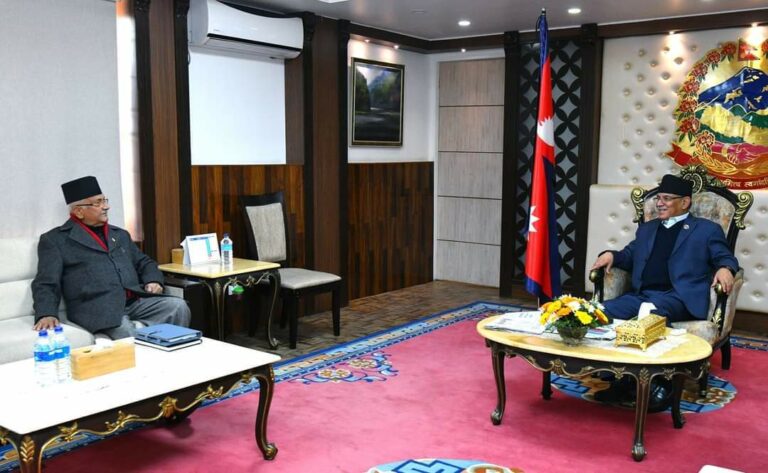 प्रधानमन्त्री प्रचण्ड र अध्यक्ष ओलीबीच भेटवार्ता