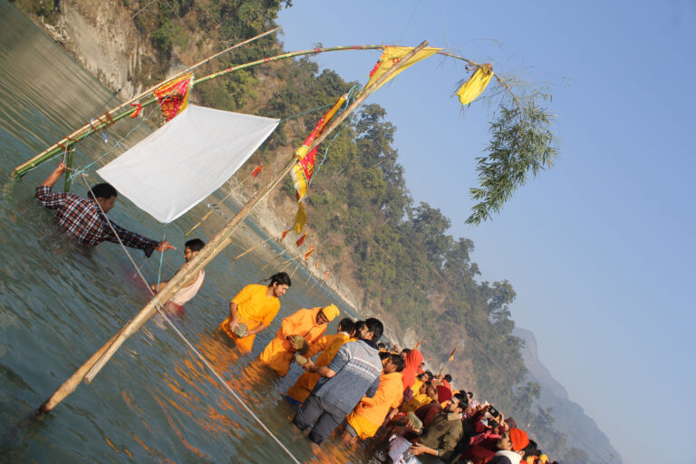 काठमाडौं, ३० पुष । पवित्र तीर्थस्थल देवघाटको बेनीमा आज बिहान बाँसको लिङ्गो गाडेर माघे सङ्क्रान्ति मेलाको शुभारम्भ गरिएको छ । गलेश्वर आश्रमका पीठाधीश अनन्त श्री विभूषित आत्मानन्द गिरी जी महाराज, हरिहर आश्रमका पिठाधीश १००८ स्वामी ज्ञानानन्द जी महाराज, महेश सन्यास आश्रमका पीठाधीश १००८ स्वामी रमणानन्द जी महाराजसहित सन्तमहन्त, बटुकलगायत स्थानीय व्यक्तिको उपस्थितिमा बाँसको लिङ्गो ठड्याइएको हो । यसअघि गलेश्वर आश्रममा भेला भएर विधिवत्रुपमा लिङ्गोसहित शोभायात्रा बेनीमा पुगेको थियो । सो अवसरमा देवघाट क्षेत्र विकास समितिका अध्यक्ष बद्री अधिकारी, सदस्य नवराज ढकाललगायतको उपस्थिति रहेको थियो ।