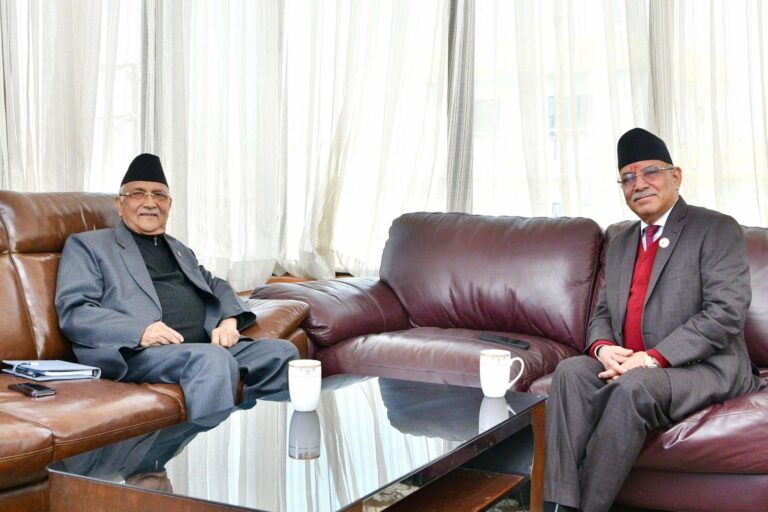 काठमाडौं, माघ २ । प्रधानमन्त्री पुष्पकमल दाहाल ‘प्रचण्ड’ नेकपा एमाले अध्यक्ष केपी शर्मा ओलीबीच बालकोटमा भेटवार्ता भइरहेको छ।