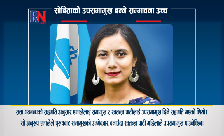 काठमाडौं । राष्ट्रिय स्वतन्त्र पार्टीबाट प्रतिनिधि सभामा निर्वाचित भएकी सांसद् सोबिता गौतम उपसभामुख बन्ने सम्भावना उच्च रहेको छ।