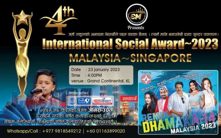 साथै यस पटकको रिमिक्स धमाका सांगीतिक कार्यक्रममा इन्टरनेशनल सोसियल अवार्डको कार्यक्रम पनि रहने संयोजक श्रेष्ठले बताए । उक्त कार्यक्रम जनवरि २४ मा होटल ग्रान्ड कंटिनेन्टलमा रिमिक्स धमाकासँगै हुनेछ । उक्त कार्यक्रममा लागी नेपाल,युएई,कम्बोडिया लगाएत बिभिन्न देशबाट दर्जनौ अतिथी आउने आयोजकले बताएका छन ।