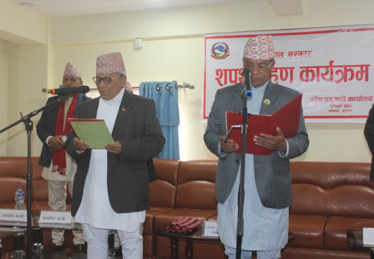काठमाडौँ,४ माघ । लुम्बिनी प्रदेशका नवनियुक्त सभामुख तुलाराम घर्ती र उपसभामुख मञ्जु खाण केसीले पद तथा गोपनीयताको शपथ लिएका छन् ।