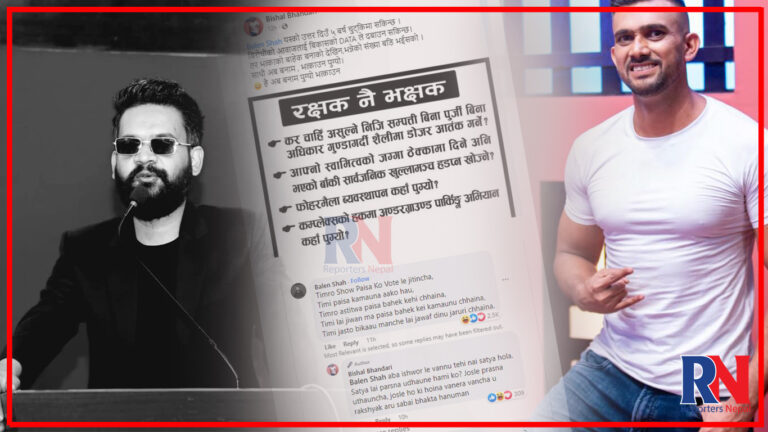 भण्डारीको सो पोष्टमा कमेन्टमा मेयर बालेनले लेखे, ‘तिम्रो शो पैसाको भोटले जितिन्छ, तिमी पैसा कमाउन आको हौ, तिम्रो अस्तित्व पैसाबाहेक केही छैन, तिमीलाई जीवनमा पैसाबाहेक केही कमाउनु छैन, तिमीजस्तो बिकाउ मान्छेलाई जवाफ दिनु जरुरी छैन।’