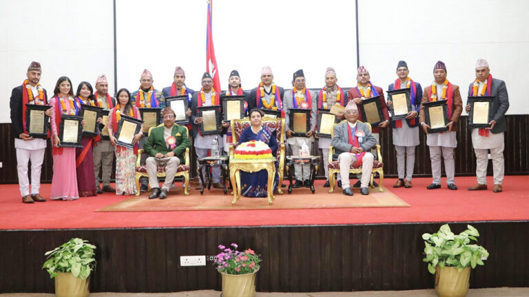 काठमाडौँ,८ माघ । नेपाली मौलिक गीत, सङ्गीतको क्षेत्रमा विशिष्ट योगदान पु¥याउने स्रष्टालाई नातिकाजी स्मृति समाजले नातिकाजी श्रेष्ठको ९८औँ जन्मजयन्तीका अवसरमा शुक्रबार शीतल निवासमा एक समारोहको आयोजना गर्दै राष्ट्रपति विद्यादेवी भण्डारीले ‘नातिकाजी राष्ट्रिय विशिष्ट सङ्गीत सम्मान तथा पुरस्कार’ प्रदान गरेका छन् ।