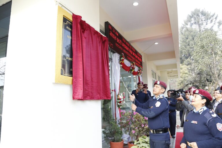 काठमाडौं, १२ माघ । नेपाल प्रहरी महानिरीक्षक धिरज प्रताप सिंहले नेपाल प्रहरी अस्पताल स्कूल अफ हेल्थ साइन्सेज शैक्षिक कार्यक्रम तथा जेष्ठ प्रहरी अतिथि गृह भवन बिहीबार नेपाल प्रहरी अस्पताल महाराजगंजमा आयोजित एक समारोहबीच उद्घाटन गरेका छन्। साथै उनले नवनिर्मित भवनको निरीक्षण गर्नुका साथै भवन परिसरमा वृक्षरोपणसमेत गरेका छन्।