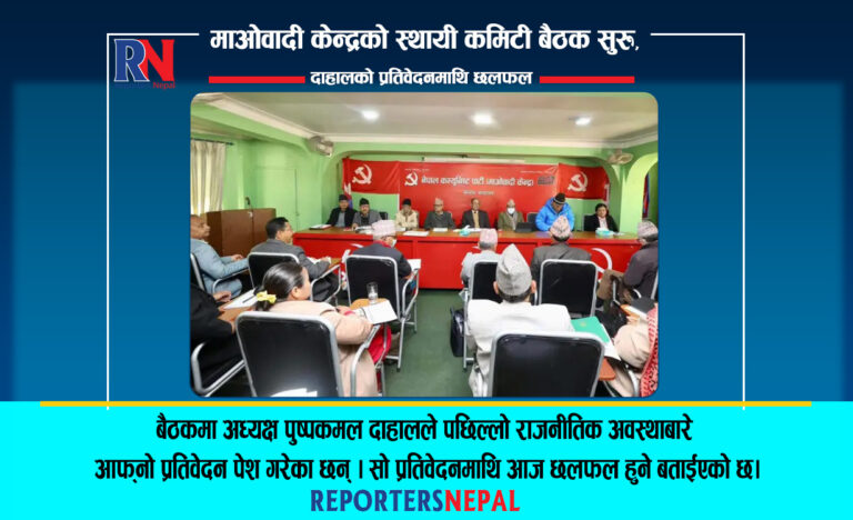 काठमाडौं, १३ माघ । नेकपा (माओवादी केन्द्र) को स्थायी कमिटी बैठक सुरु भएको छ । हिजोदेखि सुरु भएको बैठक आजपनि पार्टी कार्यालयमा बसेको हो । बैठकमा अध्यक्ष पुष्पकमल दाहालले पछिल्लो राजनीतिक अवस्थाबारे आफ्नो प्रतिवेदन पेश गरेका छन् ।