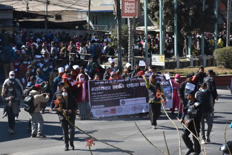 माइतीघरदेखि नयाँ बानेश्वरसम्म मार्चपास गर्दै मोर्चाले विकल्प बिना उठीबास लाउन पाइदैंन भन्दै प्रदर्शन गरेको हो।