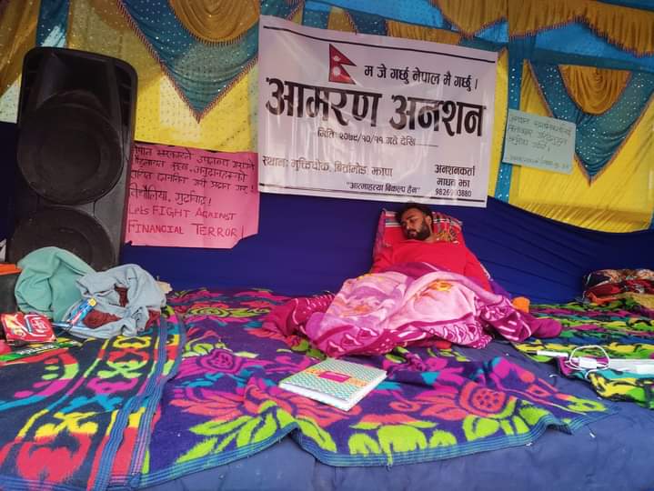 झापा, १६ माघ । झापाको बिर्तामोडमा २२ वर्षीय युवा माधव झा आमरण अनसनमा बसेको आज पाँचौं दिन पुरा भएको छ । अनसनको पाँचौं दिन पुरा भइसक्दा पनि प्रशासनले चासो नदिएको उनको गुनासो छ । इलामका प्रेमप्रसाद आचार्यले संसद् भवन अगाडि आत्मदाह गरेको भोालिपल्टबाट झा आमरण अनसनमा बसेका हुन् ।